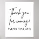 Panneau de bienvenue mariage moderne caractéristiques calligraphie signature police et merci d'être venu, s'il vous plaît prendre un. Cliquez sur le bouton "outil de conception" pour customiser plus loin. Les panneaux de mariage imprimables sont la façon idéale d'imprimer vos panneaux de mariage à la maison. Téléchargez simplement la taille dont vous avez besoin et imprimez-la dans votre magasin d'alimentation de bureau local ou à la maison.