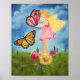 Une belle fée debout dans un lit de coquelicots jouant avec 2 grands papillons