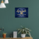 Ajoutez une touche personnalisée à une fête de remise des diplômes d'un collège ou d'un lycée avec une élégante affiche bleu marine, or et blanc 18"x24". Tout le texte est simple à customiser. Le design est composé d'un arrière - plan métallique en faux bleu foncé, d'un casquette de carton de mortier en faux papier, d'une typographie moderne élégante et d'une calligraphie manuscrite. Veuillez noter que l'or est imprimé en couleur et non en papier. Ce panneau de remise de diplômes est une façon élégante de célébrer la journée spéciale. Félicitations au diplômé !