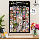 Créez facilement un panneau photo collage bannière pour votre diplômé avec 45 photos carrés d'eux à travers les années avec le titre FÉLICITATIONS dans la typographie manuscrite de script de brosse moderne avec casquettes et étoiles de graduation en feuille d'or métallique et personnalisées avec leur nom pour un affichage amusant et mémorable pour chacun de profiter à la fête de graduation. La couleur noire de l'arrière - plan peut être changée en couleur de l'école ou du thème de la fête en cliquant sur l'onglet CUSTOMISER PLUS LOIN. CONSEIL PHOTOGRAPHIQUE : Pour obtenir les meilleurs résultats, choisissez une photo avec le sujet au milieu et/ou pré-recadrez-la avec une forme similaire à celle montrée AVANT de télécharger et elle remplira parfaitement l'espace photo. Contactez le concepteur via Zazzle Conversation ou makeitaboutyoustore@gmail.com si vous souhaitez modifier ce design ou sur un autre produit.