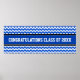 Félicitations graduation personnalisable classe de bannière poster en marrant et audacieux bleu clair, noir et blanc rétro chevron zigzags rayures motif.