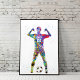 Watercolor-style poster depicting a female soccer player in a confident pose with a ball at her feet. The silhouette is filled with vivid rainbow splashes, creating a dynamic and artistic representation of strength and motion. This poster is designed to celebrate women’s soccer and adds a modern artistic touch to any space.