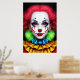 Poster Femme clown rouge cheveux vert nez rouge | Art AI