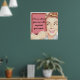Affiche illustrant l'illustration vintage des années 1950 d'une femme tenant un panneau. Customisez-le avec votre propre texte et couleur arrière - plan en appuyant sur le bouton personnaliser. Cool rétro !