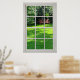 Poster Fenêtre fausse - Cadre en bois blanc - Vue Jardin