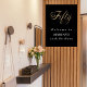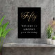 Un conseil d'accueil pour une fête du 50e anniversaire. Arrière - plan noir. Cinquante écrits avec un grand script en lettres d'or. Personnalisez et ajoutez un nom.