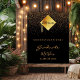 Un arrière - plan noir chic. Décoré de confettis dorés et d'un casquette en faux or abstrait et moderne, casquette, dessus de table avec l'année intérieure. Texte : Félicitations ! Le texte : Graduate, et le nom sont écrits avec un grand script de style écrit main moderne. Pour lui et elle.
