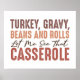 Ce design festif et amusant de Thanksgiving comprend l'expression ludique "Turquie, Gravy, Beans and Rolls, Let Me See That Casserole" dans une mise en page audacieuse et attrayante. Le texte est arrangé en un mélange de polices bloquantes, en désordre et de script élégant, créant un effet visuel dynamique et engageant. La palette de couleurs comprend des tons chauds et terreux comme les marron, les oranges et les rouges, reflétant parfaitement l'atmosphère cosy et réconfortante d'une fête d'Action de grâce. La texture pénible du texte ajoute une touche rustique et vintage au design, le rendant idéal pour les vacances.