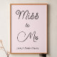 Affiche de Fête de mariage Rose Blush avec texte Miss to Mrs en écriture calligraphique élégante. Ce produit fait partie d'une collection, veuillez consulter notre collection de magasin ci-dessous pour les articles assortis.
