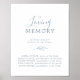 Ce panneau commémoratif minimal bleu en souvenir est parfait pour un mariage élégant. Le design présente une simple silhouette de verdure en bleu ardoise clair avec un style minimaliste classique.