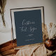 Ce panneau de texte personnalisé bleu ardoise minimale est parfait pour un mariage élégant. Le design se compose d'une simple silhouette verte dans un bleu gris foncé avec un style minimaliste classique. Customisez le libellé pour dire tout ce que vous voulez! Ce panneau peut être utilisé pour les cartes et les cadeaux, livre d'or, hashtag mariage, faveurs, dessert bar — n'importe quoi ! Il peut être utilisé pour un mariage, une douche nuptiale, un dîner de répétition ou tout événement. La ligne de texte en bas du panneau peut être personnalisée avec la date, les noms de la mariée et du marié, ou un message court comme "Merci". Si vous désirez plusieurs panneaux de coordination, customisez et ajoutez-y un à la fois.