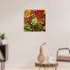Cette affiche présente une jolie petite finche dorée perchée sur une branche, entourée d'un brillant feuillage d'automne. Il est aussi petit que les feuilles du frêne et se fond en fait pour former une composition abstraite de rouge, orange, vert, jaune, noir et blanc.