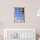 Pour une touche de jours d'été toute l'année, cette fausse fenêtre montre un ciel bleu avec des nuages blancs moelleux et les feuilles ensoleillés d'un arbre. Une scène apaisante à regarder en haute saison. Le faux cadre donne à cette affiche photographique l'apparence d'une véritable fenêtre. Maintenant, vous pouvez profiter de l'été à tout moment de l'année!
