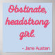 Un design sympa, parfait pour tous ceux qui aiment Elizabeth Bennet! 'Obstinez, fille forte à la tête.' Jane Austen cite un extrait du livre Pride and Prejudice. Où est notre M. Darcy ? Accentuez votre style et votre espace avec cet art inspirant! Grand cadeau pour les amateurs de littérature classique.