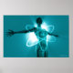 Illustration conceptuelle représentant une figure féminine transparente éclairée à l'arrière et dotée d'un bras tendu avec un symbole atomique superposé. Copyright : MedicalRF.com