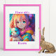 Pour la chambre de la fille. Belle Anime fille avec deux yeux de couleur différente tenant un adorable chiot. Les couleurs utilisées sont le rose, l'orange, le bleu, le violet et le bleu. Enfants mignons et colorés Ai art. génatviecontent