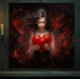 Dans une composition visuelle saisissante, une scène enchanteresse se déroule avec une fille vêtue d'une élégante tenue noire, berçant un grand coeur dans ses mains. Les cheveux noirs flottants de la fille ajoutent une touche de drame et de mouvement à la scène, créant un sentiment de beauté éthérée.