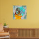 Fille avec parapluie dans l'affiche de pluie verte vent. Ce dessin représente une fille dans le vent et la pluie, son dos tourné vers le spectateur. Elle tient un parapluie. Les cheveux de la fille sont soufflés dans le vent. L'arrière - plan est un tourbillon dans les tons verts.
