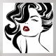 Joli, vintage thème girly en noir et blanc. Un beau visage de femme aux lèvres rouges et aux cheveux bouclés. Amusant, dessin rétro.