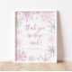Poster Fille rose argent flocons de neige Merci beaucoup