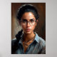 Portrait de peinture à l'huile d'une belle jeune femme vénézuélienne aux cheveux tressés et lunettes. Il s'agit d'un autre design 100% original Snuggle Hamster.