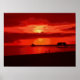 jetée de pêche contre un ciel rouge feu avec 2 personnes marchant sur la plage. prise à Naples, floride. carte et timbres à assortir.