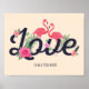 Poster Flamant rose Love