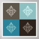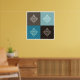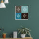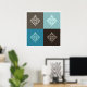 Poster Flèche Damask Pattern Carrés Teals Browns White