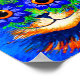 Affiche mettant en vedette la peinture animale de Louis Wain Cat Flower Eyes (1860-1939). Un chat arc-en-ciel grince largement. Des fleurs bleues recouvrent ses yeux. Un cadeau merveilleux pour l'art amoureux des chats et anglais.