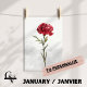 Poster Fleur de janvier aquarelle botanique oeillet rouge