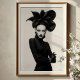 Faites une déclaration saisissante avec cette impression d'art noir et blanc captivante, véritable chef-d'oeuvre de la mode avant-gardiste et de l'expression artistique. Ce portrait frontal captivant présente une femme d'allure intense, couronnée d'un casquette noir extraordinaire et sculptural qui se déroule comme une fleur sombre et dramatique. Vêtue d'un col de cygne noir élégant, avec d'élégants gants en cuir et des bracelets en argent chatoyants sur un poignet, sa tenue est une étude de minimalisme sophistiqué. Sa peau pâle, ses lèvres noires crues et ses yeux ailes spectaculairement créent un contraste fascinant contre son ensemble sombre et l'arrière - plan blanc immaculé, mettant l'accent sur son regard puissant et direct. Armoiries croisées en toute confiance, cette oeuvre incarne une élégance féroce, mystérieuse et indéniablement chic. Parfait pour les espaces de vie modernes, les studios de mode ou tout décor à la recherche d'une touche de sophistication unique, d'un art audacieux et d'un récit visuel vraiment inoubliable.