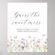Devinez le Baby shower de jeu Sweet Mess Signe. Les articles correspondants, y compris les cartes de devinettes, se trouvent dans la boutique Adore Paper Co. Zazzle.