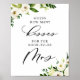 Combien de baisers pour la future Mme ? Ajoutez ce signe botanique à votre douche nuptiale. il comprend un bouquet floral aquarelle de fleurs blanches et de feuillage. Ce panneau floral "Combien de baisers" est parfait pour les douches nuptiales hivernales et printanières.