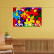 Bouquet de ballons gonflables en forme de fleurs de différentes couleurs. Joyeuses vacances ! Soyez heureux ! Juste une affiche pour vos besoins. Vous pouvez modifier ou supprimer le texte modèle
