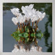 Fleurs de cyclamen blanc (Plante) dans l'eau avec réflexion, effet numérique