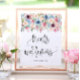 Ce panneau de bienvenue présente un magnifique design floral en goutte aquarelle, un titre en écriture calligraphique et votre texte personnalisé. Utilisez le formulaire de modèle pour ajouter votre personnalisation.