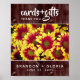 Ajoutez une touche de charme vintage à votre réception de mariage avec cette enseigne mariage à thème fleuri, qui permet aux clients de savoir où mettre des cadeaux et des cartes pour les jeunes mariés. Comprend un mélange de fleurs automnales de mini-tournesols à deux tons vifs posés sur une clôture patinée. Customisez avec les noms des jeunes mariés et la date du mariage. Un vrai souvenir pour les thèmes rustiques et mariages d'automne ! Design © W.H. Sim, Tous droits réservés. Voir plus sur zazzle.com/expressionsoccasions