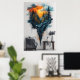 Surrealist art of a suspended forest on a floating island with vibrant sunset. Watercolor style with artistic splatters. Perfect for murals, interior decoration and posters. Bring nature and imagination to your space with this calm and inspiring work in warm and cool colors. Ideal for modern rooms.