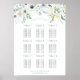 Vibes boho romantiques avec cette floraison de belles fleurs blanches et de la verdure d'eucalyptus décorant le haut et élégante typographie simpliste pour les détails. Personnalisez facilement avec le nom de vos invités et vous pouvez changer les numéros de table en d'autres titres si vous préférez. Essayez de conserver un nombre similaire de caractères, mais si vous passez à une autre ligne, vous pouvez réduire le texte via l'option de mise à l'échelle vers le bas via l'option Personnaliser plus loin. Vous pouvez également le choisir si vous souhaitez modifier les styles et les couleurs des polices.