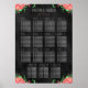 © Sunny Mars Designs - Floral Hibiscus : Rose sur Chalkboard Mariage Cartes de siège pour 15 tables - Personnalisable, moderne, élégant, élégant, classe, tendance, chic, formel imprimé noir tableau noir chevalet mariage table de modèle avec belle tourbillonnant motif hibiscus tropical fleuri contre un arrière - plan de tableau ou de tableau de craie. Pour quinze tables.