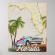 Magnifique carte illustrée de l'état de la Floride et des îles de la région dans un beau style vintage avec une voiture rétro des années 1950.
