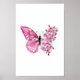 Flower arrangement of pink butterfly with rose Japanese cherry blossoms on white background.