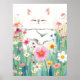 Poster Fluffeux chat blanc dans la prairie fleur sauvage,