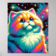 Un adorable chat orange, rose et blanc dans l'espace dans un style rétro IA généré