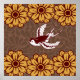 Joli Flying Bird Sparrow sur un arrière - plan de damas brun et de fleurs rouge et or. Un design élégant qui fait une idée de cadeau magnifique. girly, les couleurs de chute, tourbillons élégants, damas, jolie, oiseaux, oiseau, moineau, rouge et or. cadeaux pour elle