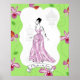 Un imprimé floral éclatant met en valeur une femme élégamment habillée en robe lilas.