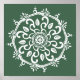 Ce mandala blanc est assis sur un arrière - plan vert de forêt. Les couleurs sont calmes. Partie de la collection Payon Mandala.