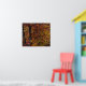 Cette affiche présente un design impressionniste d'une forêt de hêtres aux couleurs d'automne brillantes de rouge, brun, jaune et or. Quelques troncs marron foncé regardent à travers les feuille.