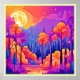 Une peinture vibrante et colorée d'une forêt la nuit avec une pleine lune. Les arbres sont d'une variété de couleurs, y compris le violet, l'orange et le bleu. Le ciel est rempli d'étoiles (Cette conception est réalisée avec l'IA). Commandez dès aujourd'hui et profitez de la joie de faire du shopping !