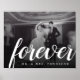 Poster d'art mural personnalisé et abordable personnalisé avec votre photo et texte. Ajoutez votre Mr et Mrs monogram et une grande photo mariage avec le texte "éternellement" du script de calligraphie sur le devant. Utilisez les outils de conception pour ajouter d'autres photos. Customisez-le pour modifier les polices et les couleurs de texte afin de créer une image unique d'une impression photographique mariage. Des affiches photo personnalisées font un grand cadeau pour la famille et les amis!